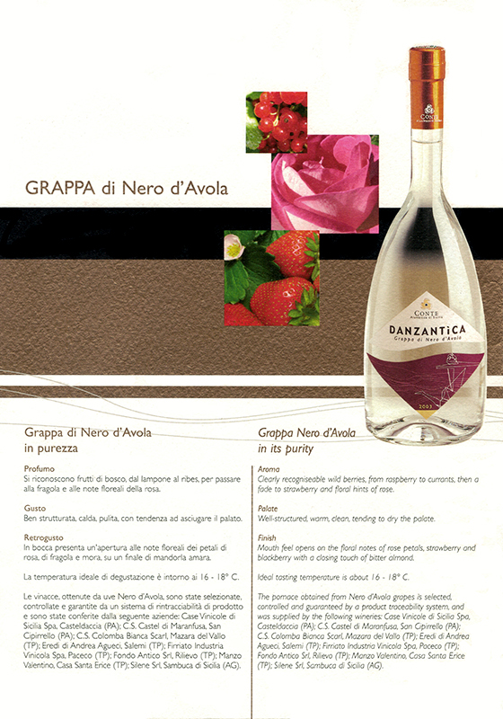 Le grappe Danzantìca, si caratterizzano per i profumi e gli aromi che sprigionano. Esprimono con intensità il sole, la terra, le passioni e i sentimenti, l'anima della Sicilia. Sono un'esplosione di sensazioni avvolgenti che evocano e riportano al presente le atmosfere ludiche ed erotiche dei riti dionisiaci, ove i Satiri e le Baccanti si abbandonavano a danze e giochi intriganti. Una linea esclusiva che incarna lo spirito dell'antica Grecia, Danzantìca è la Sicilia riservata a chi ha scelto l'eccellenza del gusto.